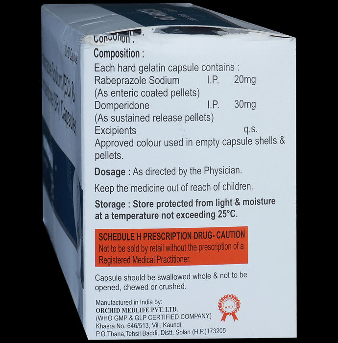 Composition : Domperidone (30mg) + Rabeprazole (20mg)