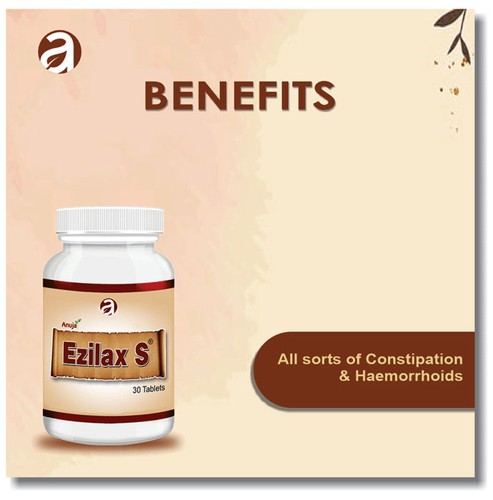 Anuja Ezilax S Tablet is a stimulant-free herbal laxative that can soften dry, hard stool for easy bowel movements. It can relieve constipation, regulate bowel movements, and reduce abdominal pain and bloating. This herbal formulation has a combination of herbs that can reduce vata imbalance, improve digestion and support the proper functioning of the colon.