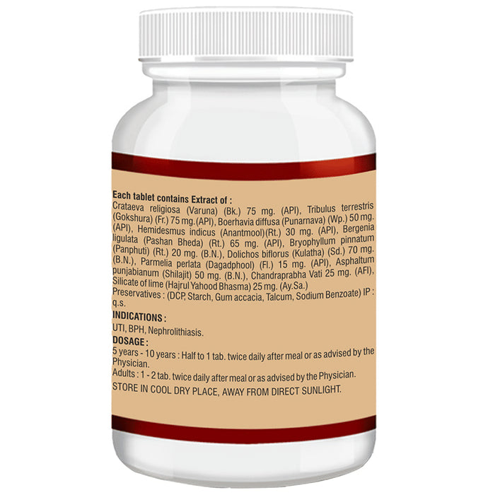 Composition : Varun,Gokshura,Punarnava,Pashan behda,Kulatha,Hajrul yahood bhasma