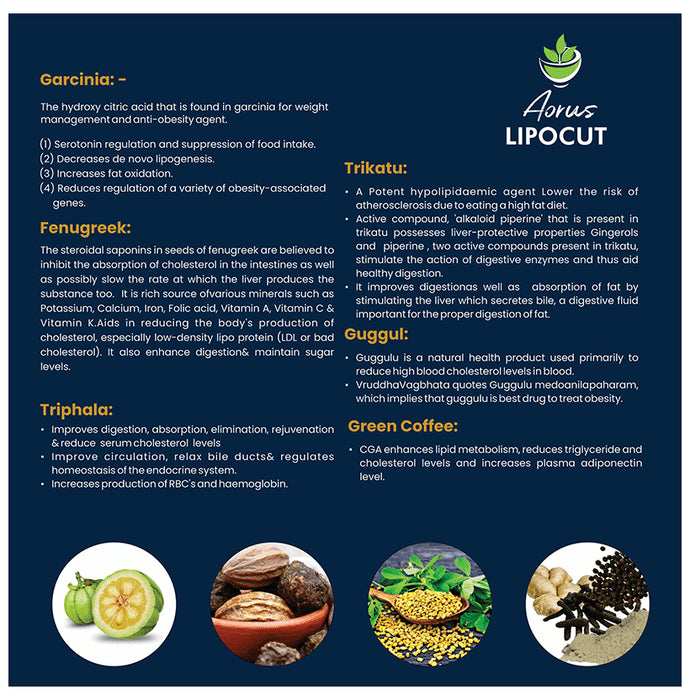 Aorus Lipocut Capsule is an ayurvedic formula with 3X fat-burning capacity. It is enriched with the goodness of garcinia, fenugreek seeds, trikatu etc., that boost metabolism and aids in faster weight loss.