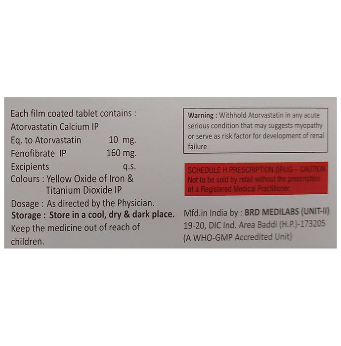 Composition : Atorvastatin (10mg) + Fenofibrate (160mg)
