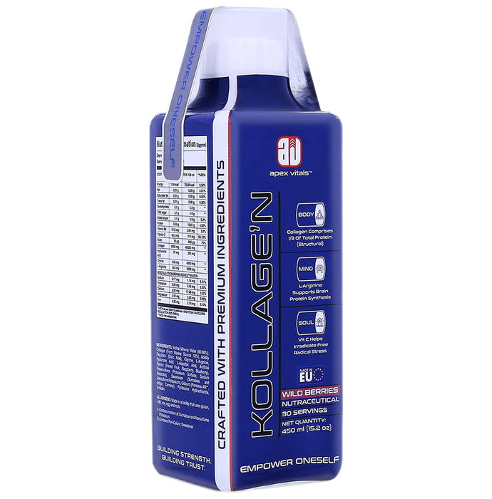 Apex Vitals Kollagen Liquid is a marine-based collagen supplement designed to help support the health of joints, skin, hair, and nails. Formulated with 12% marine collagen peptides, it contains essential nutrients like Hyaluronic Acid, Vitamin C, Glycine, L-Arginine, Biotin, and Vitamin B6. These ingredients are selected for their potential to help promote collagen synthesis, skin hydration, and overall connective tissue health. Presented in a liquid form for better absorption and ease of use, Apex Vitals Kollagen can offer a convenient option for adults looking to help maintain youthful skin, strong joints, and healthy hair and nails.
