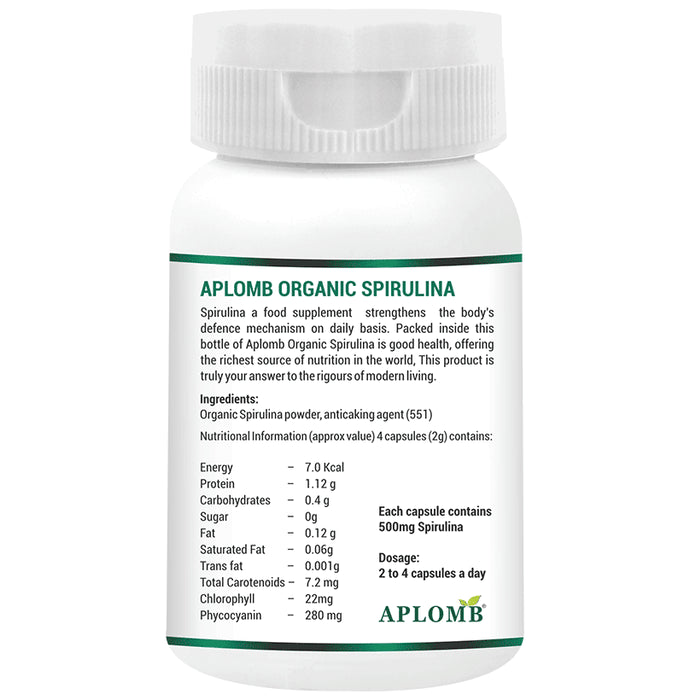 Aplomb Capsule Spirulina Organic is a formulation rich in various nutrients like protein and thiamine. It has antioxidant and anti-inflammatory properties.