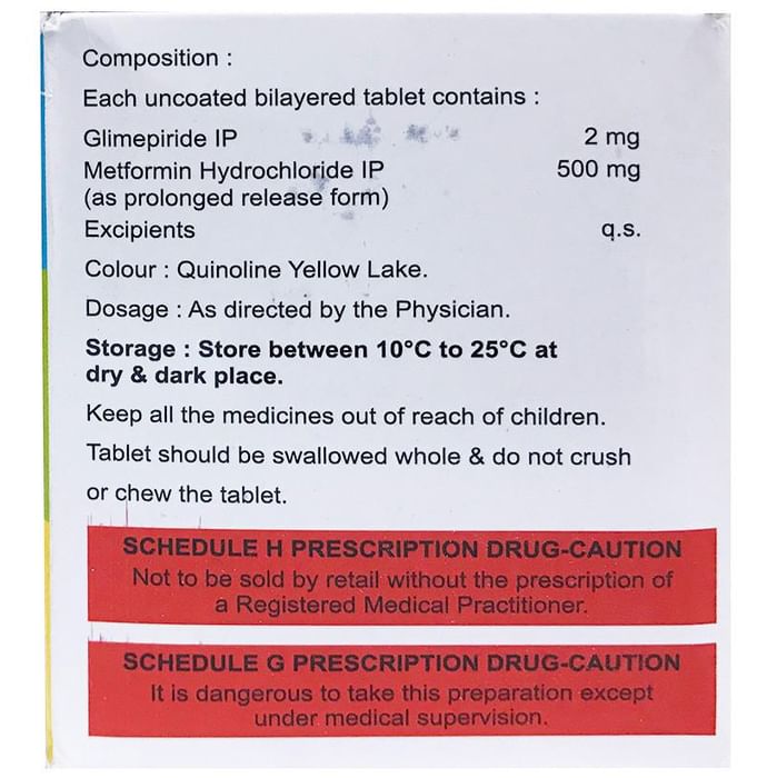 Composition : Glimepiride (2mg) + Metformin (500mg)