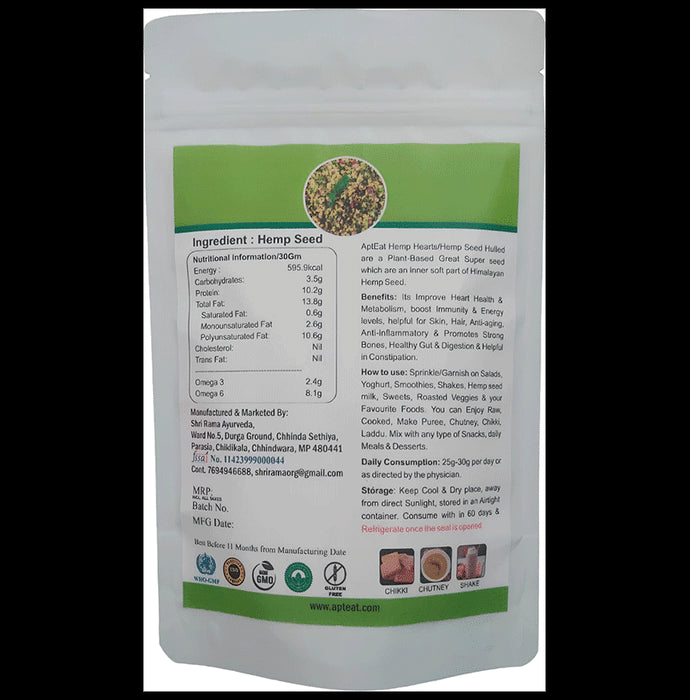 Apt Eat Hemp Hearts NuttyAptEat Hemp Hearts are a plant-based great superfood which is the inner soft part of Himalayan Hemp Seeds and is loaded with nutrition, that enhances your well-being. Hemp Hearts is also known as Hulled Hemp Seed and Shelled Hemp Seed. It’s an excellent source of edestin protein, fibre, omega 3 and 6, gamma-linolenic acid, antioxidants, vitamin E, B6 and minerals like Magnesium, Phosphorus, Zinc, Iron, Calcium and Copper.