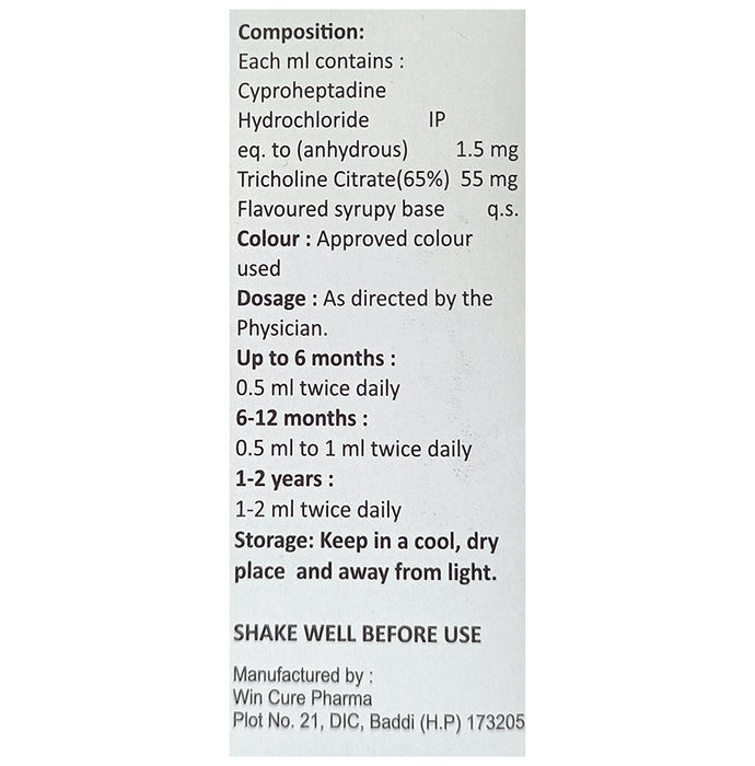 Composition : Cyproheptadine (1.5mg) + Tricholine Citrate (55mg)