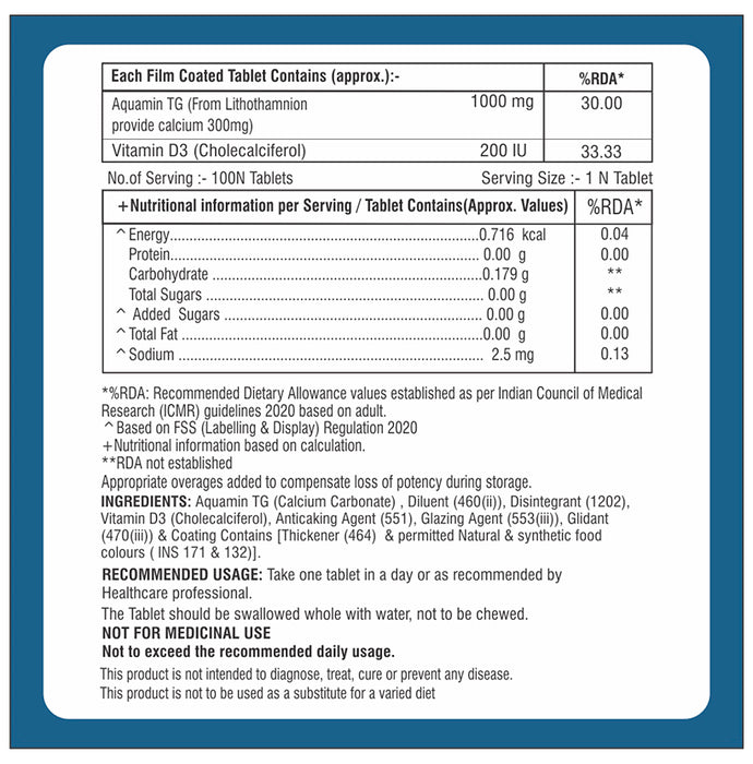 Composition : Aquamin TG(Calcium carbonate),Vitamin D3