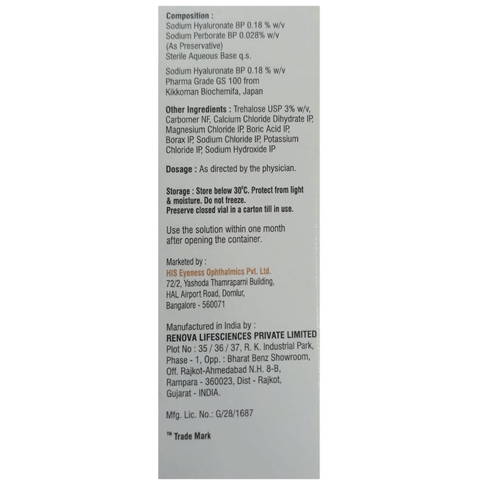 Composition : Sodium Hyaluronate (0.18% w/v)
