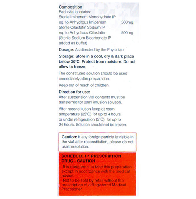 Composition : Imipenem (500mg) + Cilastatin (500mg)