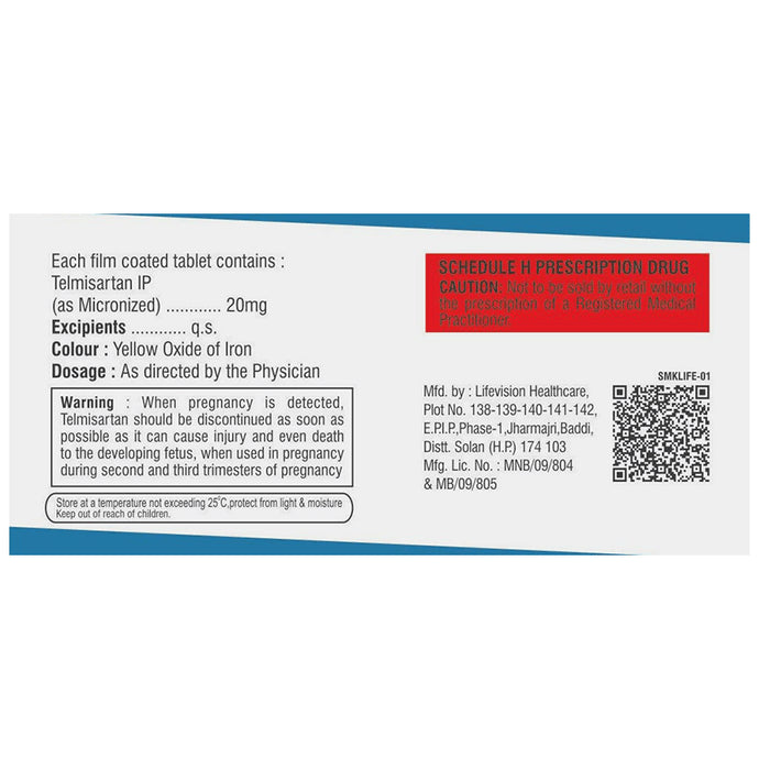 Arbilife 20 Tablet is a medicine used to treat high blood pressure and heart failure. Lowering blood pressure helps to prevent future heart attacks and strokes. This medicine is also effective in preserving kidney function in patients with diabetes. Arbilife 20 Tablet can be prescribed either alone or in combination with other medicines. It may be taken with or without food during the day or at night. However, try to take it at the same time each day to get the most benefit. It is important to continue taking it regularly even if you feel well or if your blood pressure is controlled. Most people with high blood pressure do not feel ill, but if you stop taking this medicine, your condition could get worse. This is a widely used medicine and is considered safe for long-term use.Making some changes in your lifestyle will also help lower your blood pressure. These may include regular exercise, losing weight, smoking cessation, reducing alcohol intake, and reducing the amount of salt in your diet as advised by your doctor.This medicine is tolerated well by most patients and has few side effects. However, it may cause hypotension (low blood pressure) in some people. Let your doctor know if you experience any of these side effects. They may be able to help by reducing the dosage or by prescribing you an alternate medicine.Before taking this medicine, let your doctor know if you have any kidney or liver problems. Pregnant or breastfeeding mothers should also consult their doctor before taking it. Your doctor may check your kidney function, blood pressure, and potassium levels in your blood at regular intervals while you are taking this medicine.