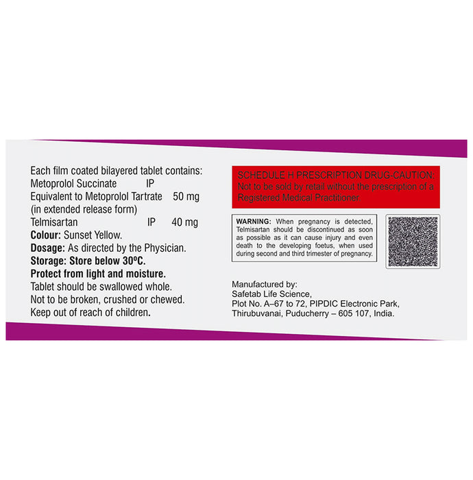 Composition : Telmisartan (40mg) + Metoprolol Succinate (50mg)