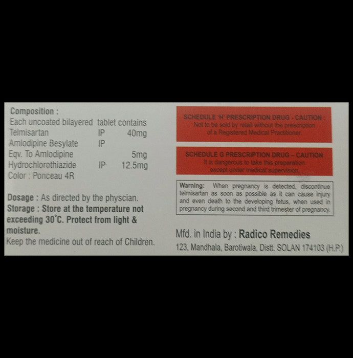 Composition : Telmisartan (40mg) + Amlodipine (5mg) + Hydrochlorothiazide (12.5mg)