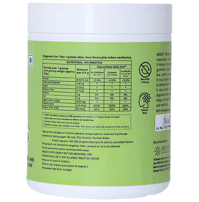 Arrvit Apple Cider Vinegar Gummies Delicious Green Apple Gluten Free