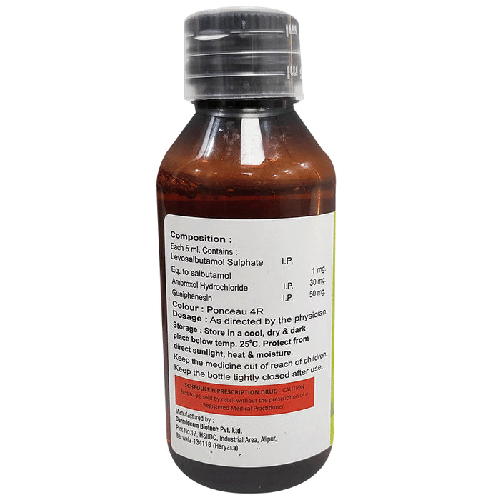 Composition : Ambroxol (30mg/5ml) + Levosalbutamol (1mg/5ml) + Guaifenesin (50mg/5ml)