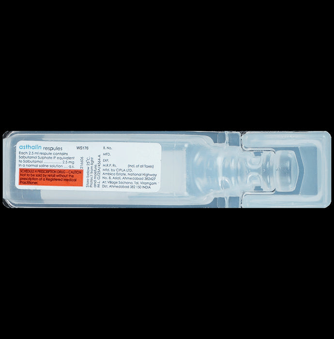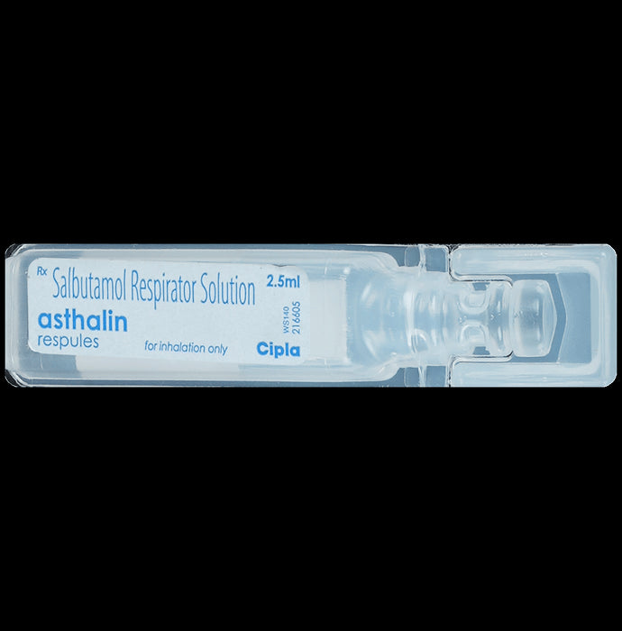 Asthalin Respules belongs to a group of medicines called fast-acting bronchodilators or “relievers”. It’s used to treat the symptoms of asthma and chronic obstructive pulmonary diseases (COPD) such as coughing, wheezing, and breathlessness.Asthalin Respules is called '__'reliever'__' inhalers because they give you quick relief from breathing problems when you need it. In most cases, you will be given another inhaler to prevent your symptoms (a “preventer”) and you should use this regularly every day. Asthalin Respules works quickly and the effects can last several hours. You can use it at any time of day, but only use it when you notice symptoms, such as coughing, wheezing, shortness of breath, tightness in the chest or you know that you are going to do an activity that can cause breathlessness. When an asthma attack happens, you should take the number of puffs your doctor recommends. There are several types of inhaler devices so make sure you know how to use your inhaler correctly, otherwise, it may not work. Do not stop using this medicine unless your doctor tells you to. If you stop, your breathing problems could get worse.Asthalin Respules is generally safe and effective but may cause some common side effects which include tremors, headaches, palpitations, viral respiratory tract infections, and cough. These side effects are not often dangerous and should gradually improve as your body gets used to this medicine. There are other rare, side effects and you should call your doctor straight away if you get chest pain, a very bad headache, or very bad dizziness.Before using Asthalin Respules, you should tell your doctor if you have high blood pressure, an overactive thyroid gland, a history of heart problems, diabetes, or low levels of potassium in your blood to make sure it is safe. Also, make sure your doctor knows if you are pregnant or breast-feeding before taking this medicine. This medicine can make you feel dizzy or shaky, therefore, do not drive, use tools, or machinery until you feel better. Avoid smoking as it causes damage to your lungs and will make your condition worse.