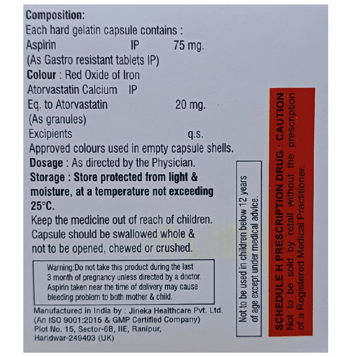 Composition : Atorvastatin (20mg) + Aspirin (75mg)