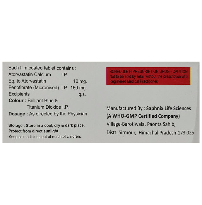 Composition : Atorvastatin (10mg) + Fenofibrate (160mg)