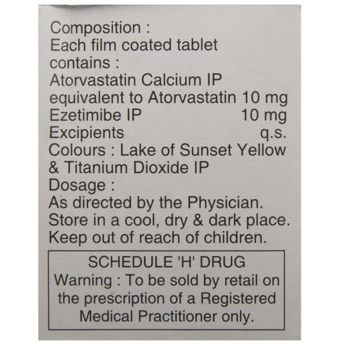 Composition : Atorvastatin (10mg) + Ezetimibe (10mg)