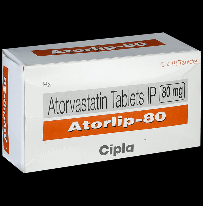 Atorlip 80 Tablet belongs to a group of medicines called statins. It is used to lower cholesterol and to reduce the risk of heart diseases. Cholesterol is a fatty substance that builds up in your blood vessels and causes narrowing, which may lead to a heart attack or stroke.Atorlip 80 Tablet is a widely prescribed medicine and is regarded as safe for long-term use when taken as per the doctor's advice. It can be taken with a meal or on an empty stomach. You can take it at any time of the day but try to take it at about the same time each day. Most people with high cholesterol do not feel ill, but stopping your medicine may increase your cholesterol levels thereby increasing your risk of heart disease and stroke.It is important to have your cholesterol levels checked regularly. This medicine is only one part of the treatment program which should also include a healthy diet, regular exercise, smoking cessation, moderation of alcohol intake, and weight reduction. You can eat normally while taking this medicine, but try to avoid foods that are high in fat. Common side effects of this medicine include constipation, flatulence, dyspepsia, and abdominal pain. These are usually mild and disappear after a short time. Consult your doctor if they persist or if you notice any yellowing of your eyes or get repeated or unexplained muscle pains. This medicine should not be used in some conditions such as liver disease. Also, pregnant women and breastfeeding mothers should not take this medicine as it may harm the developing baby. Diabetic patients should monitor their blood sugar levels while taking this medicine, as it may lead to an increase in blood sugar levels. Your doctor may check your liver function before starting the treatment and monitor it regularly thereafter.