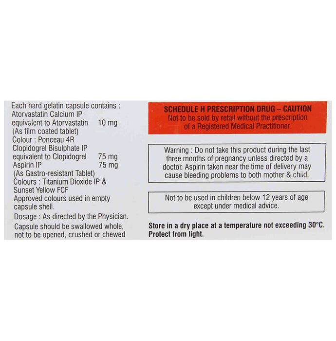 Composition : Aspirin (75mg) + Atorvastatin (10mg) + Clopidogrel (75mg)