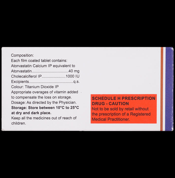 Composition : Atorvastatin (40mg) + Vitamin D3 (1000IU)