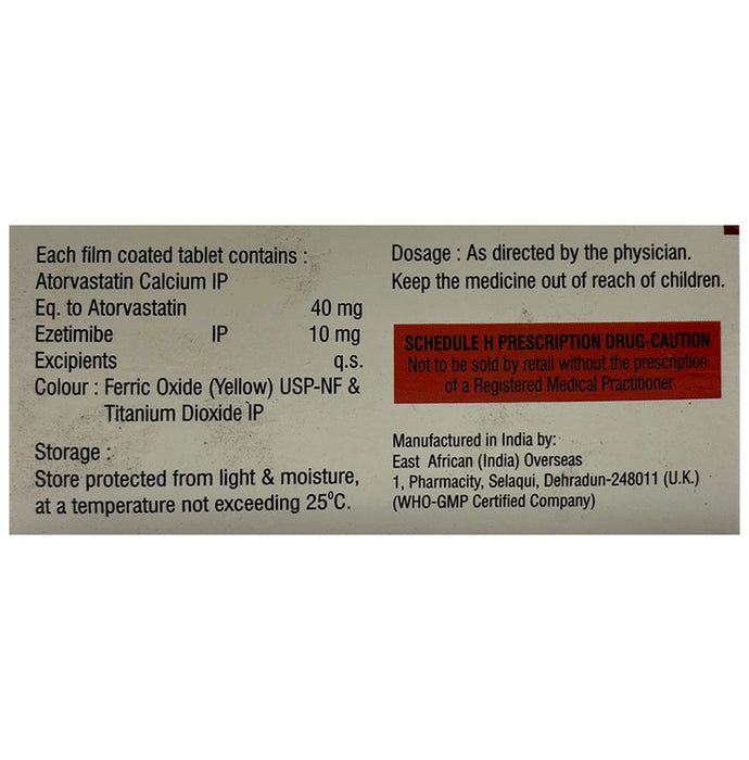 Composition : Atorvastatin (40mg) + Ezetimibe (10mg)