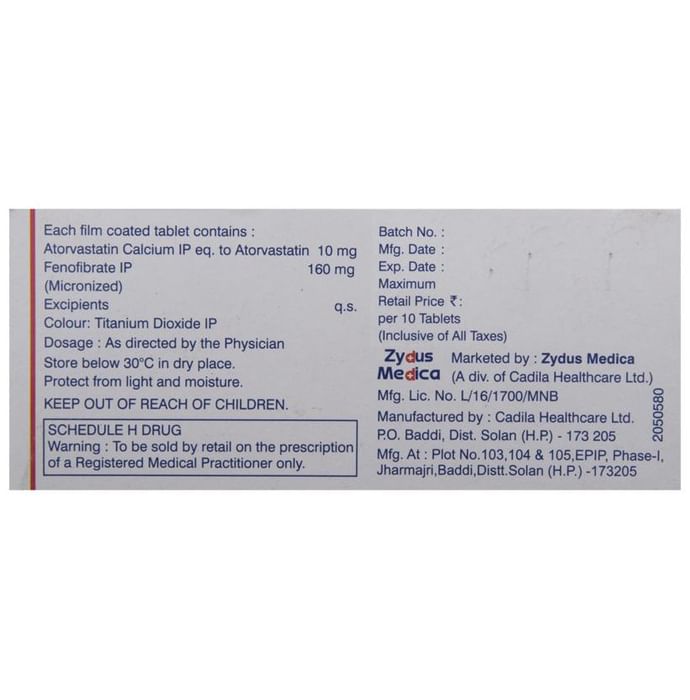 Composition : Atorvastatin (10mg) + Fenofibrate (160mg)