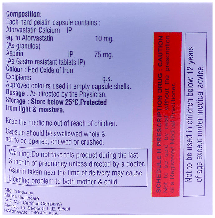 Composition : Atorvastatin (10mg) + Aspirin (75mg)