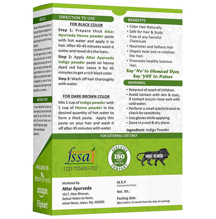 Attar Ayurveda Pure and Natural Indigo Powder is helpful in promoting healthy hair. Indigo Powder is known to condition the hair and prevent dandruff. In addition to this, it helps to soothe the scalp. Indigo is known to treat kidney and liver-related ailments. It comes in powder form originally made from indigo leaves.
