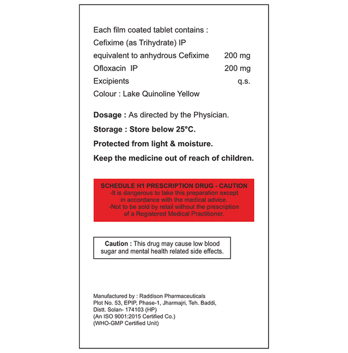 Composition : Cefixime (200mg) + Ofloxacin (200mg)