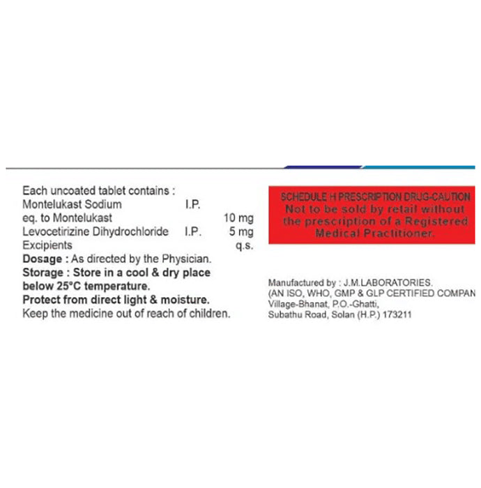 Composition : Levocetirizine (5mg) + Montelukast (10mg)