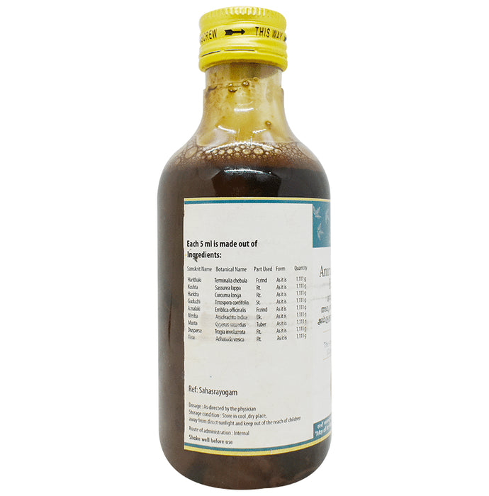 AVP Amrutharajanyadi Kashayam is a concentrated decoction prepared from herbal ingredients that contain water-soluble active principles. It is an Ayurvedic medicine used for various purposes.