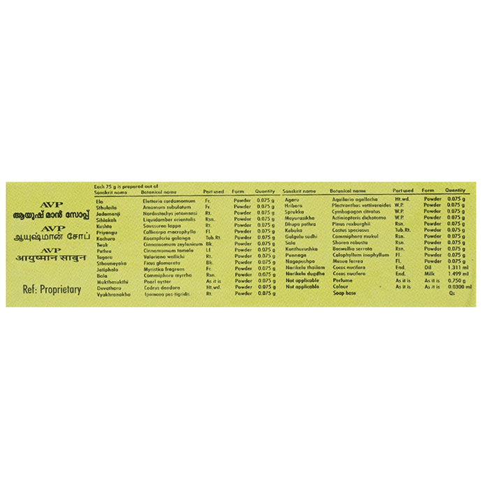 Avp the Arya Vaidya Pharmacy Ayushman Soap is a new definition of Ayurveda self-care! AVP Ayushman Ayurvedic Soap brings together the goodness of cardamom and other 26 finest herbal ingredients to nourish and naturally rejuvenate the skin.