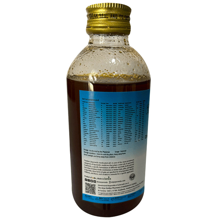 AVP Dhanwantharam thailamDhanwantharam thailam from AVP is a time-tested classical formulation made with safe herbs and authentic ayurvedic products from the house of AVP. It is effective in arthritis and muscle pain and helps to manage traumatic injuries, muscle pain and neurological disorders. Thailam helps in post-trauma, sports injuries and accidents and reduces burning sensations.