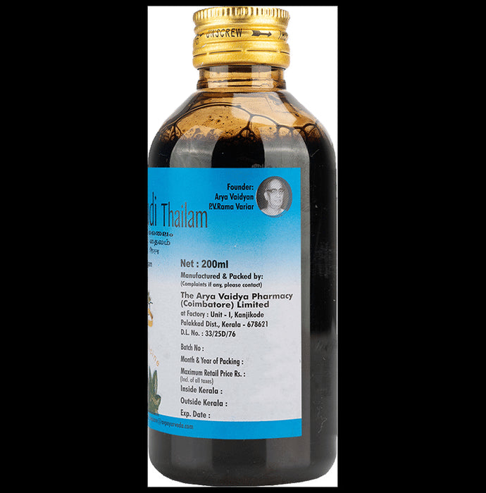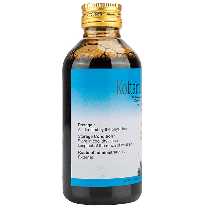 AVP Kottamchukkadi Thailam is a classical formulation made with safe herbs, which can help reduce pain in elbows and injuries. It helps relieve sprain and provides a soothing effect.Key Benefits:The oil provides relief from pain in the elbowsIt helps alleviate pain from injuriesIt may aid in relieving sprain and provides a soothing effectDirections For Use:Use as directed by the healthcare professional.Safety Information:Read the label carefully before useStore in a cool and dry place, away from direct sunlightKeep out of reach of children