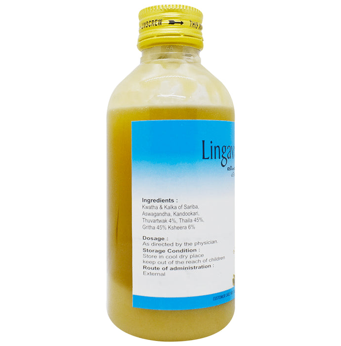 AVP Lingavardhana Thailam is an Ayurvedic massage oil formulated to support men's reproductive health. It is an external application oil that contains a blend of herbs such as Ashwagandha, Kandookari, and Sariba.