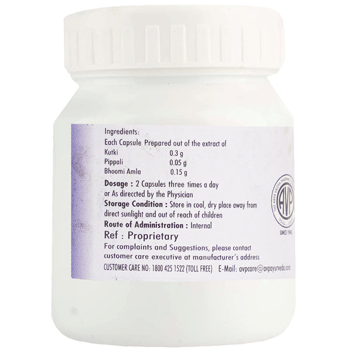 Avp Liv Up Capsule is formulated with a blend of exquisite herbs such as katuki, bhunimba, and pippali to support and amplify liver health. The liver plays a crucial role in detoxification, metabolism, and maintaining overall well-being.