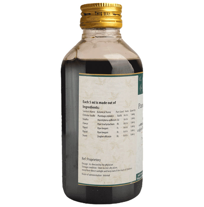 Composition : Pippali (Piper longum), Chitraka (Plumbago zeylanica), Nagara (Zingiber officinale), Kulattha (Macrotyloma uniflorum)