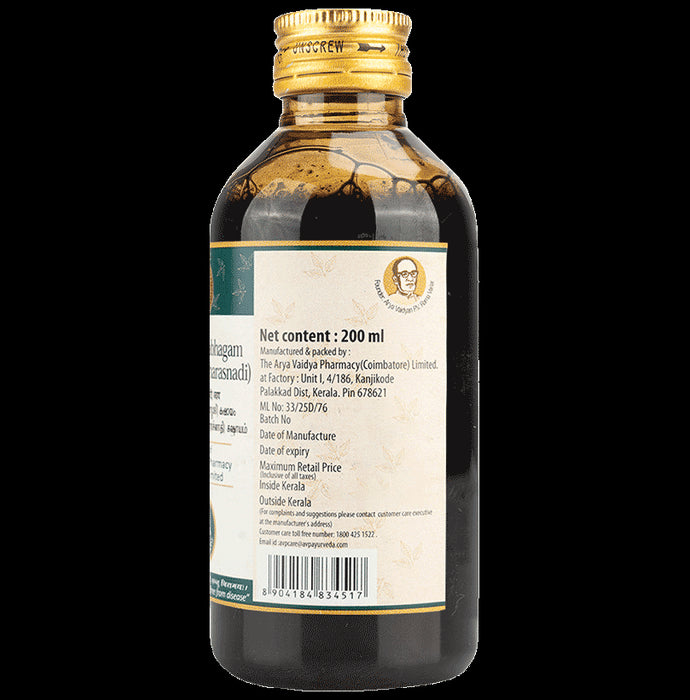 AVP Rasnadwigunabhagam kashayam is a formulation that helps to deal with various skeletal diseases, including pain due to joint disorders. It helps with other conditions such as sciatica, backache, paralytic disorders, and abdominal distension. It is helpful in soothing inflammation and irritation of nerves and removes toxins from the body. Furthermore, it reduces inflammation of organs/parts of the musculoskeletal system. The formulation does not have any side effects and is safe for usage.