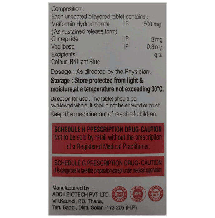 Composition : Glimepiride (2mg) + Metformin (500mg) + Voglibose (0.3mg)