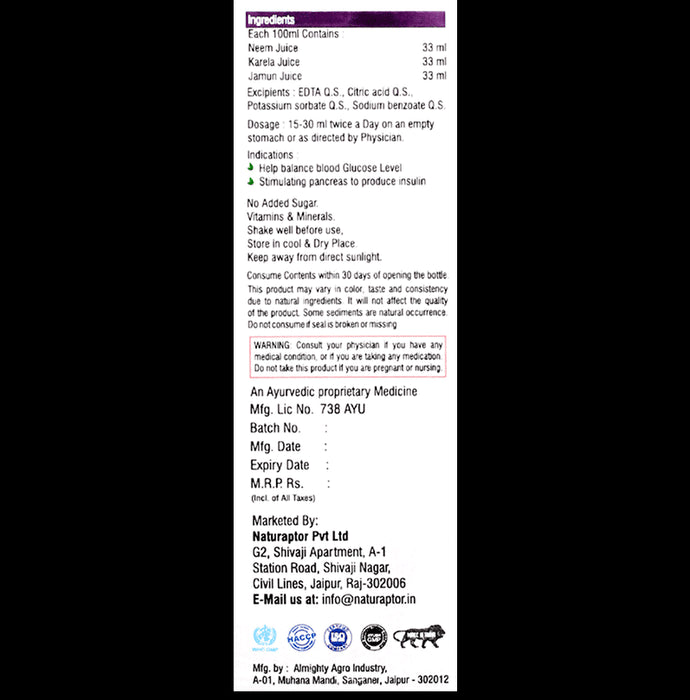 Ayah Combo Pack of Neem Karela Jamun Ras (1000ml & 500ml)