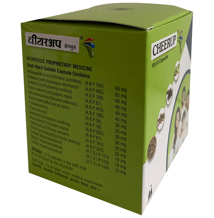 Ayulabs Cheerup Capsule is a blend of potent ingredients that helps patients recover faster from ailments, builds up the body's resistance power, and helps regain strength and stamina.It also improves appetite and promotes digestion by improving the body's metabolism. The product also works as an anabolic and adaptogenic.