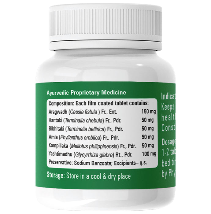 Composition : Aragwadh,Haritaki,Bibhitaki,Amla,Kampillaka,Yashtimadhu