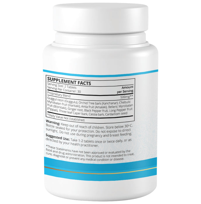 Composition : Kanchanara,Haritaki,Bibhitaki,Amlaki,Maricha,Shunti,Pippali,Ela,Tvak,Tejpatta,Guggulu