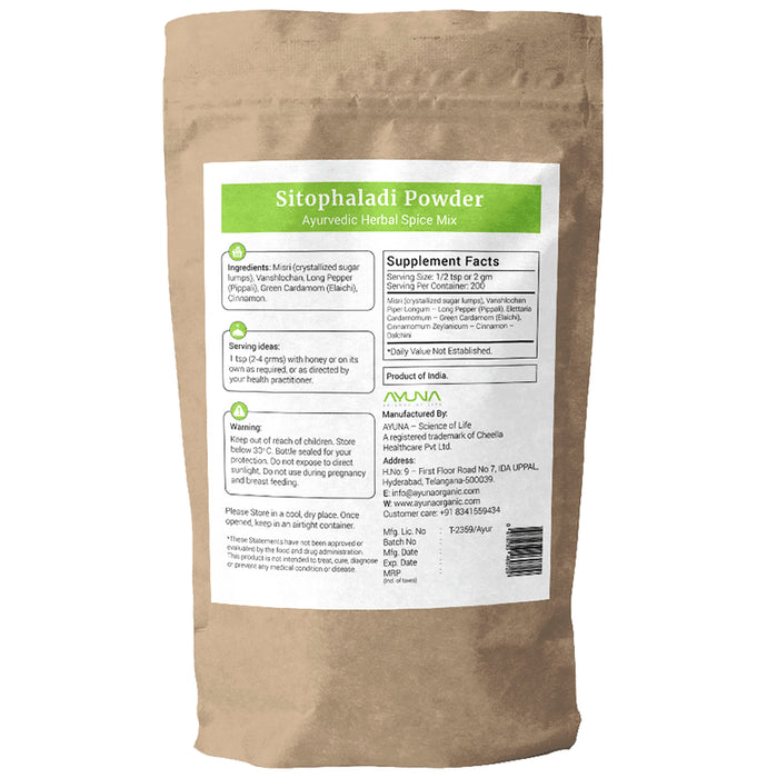 Ayuna Sitophaladi Powder is a traditional ayurvedic blend that helps relieve cough, cold and fever. It is effective for various respiratory disorders, managing blood sugar levels and management migraines. It is also helpful for anaemia, pleurodynia and intercostal neuralgia.