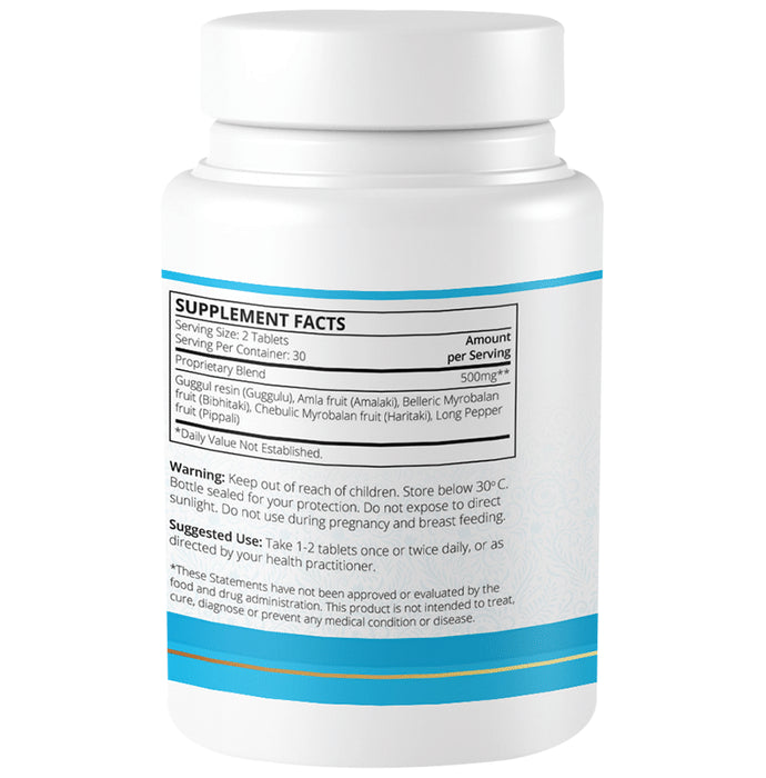 Composition : Amla,Haritaki,Vibitaki,Long pepper,Guggulu