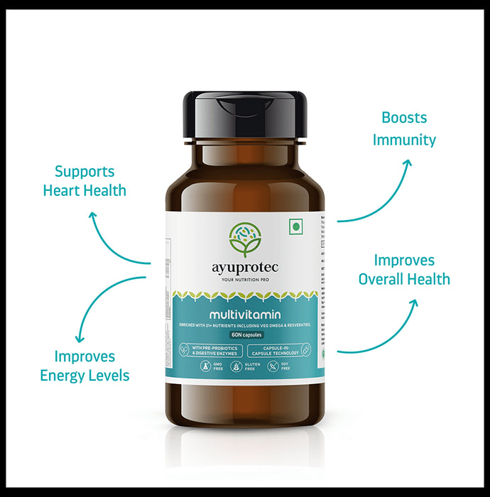 Ayuprotec Multivitamin Capsule comes with pre-pro biotics and digestive enzymes. The capsule is GMO, gluten and soy-free. It can help maintain overall health.