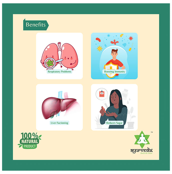 Ayurvedix Neem Giloy Ark is an ayurvedic syrup useful in dealing with various disorders. Giloy has anti-pyretic, digestive, anti-inflammatory and blood purifying properties. It helps in enhancing the body’s immune system. Neem extract has long been used as an ayurvedic remedy for numerous ailments like asthma, constipation, cough, diabetes, periodontal disease and urinary tract infection.