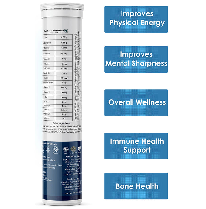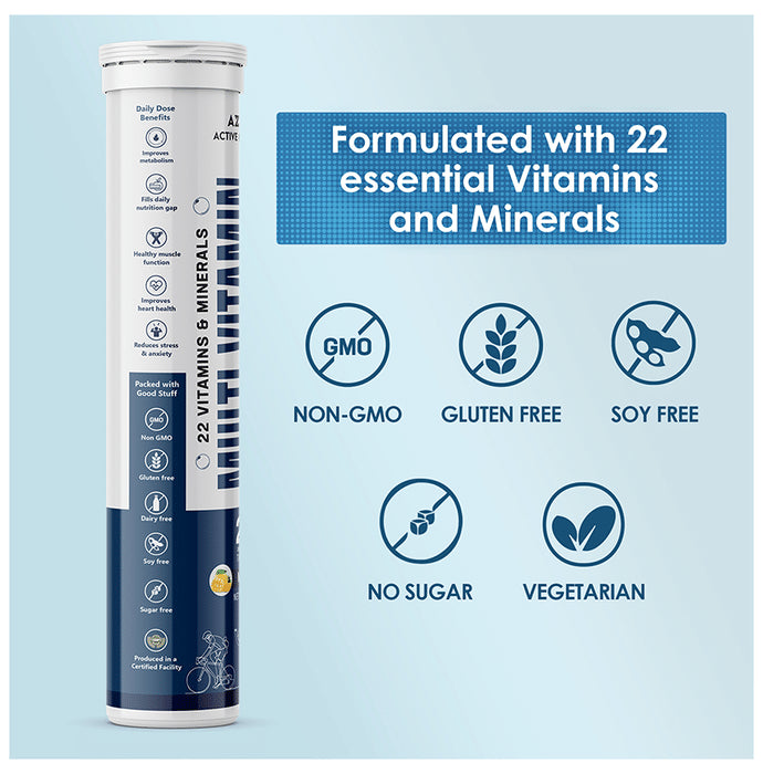 Azani Active Nutrition Multi-Vitamin Effervescent Tablet is formulated with 22 essential vitamins and minerals that are highly-effective, super absorbent, effortless to use and easy to maintain as a daily habit. Several vitamins and minerals are not produced naturally in the body, without which we cannot function well. These micronutrients are essential to daily well-being, so we have to get them from external sources. Multivitamins are essential for overall immunity, heart and brain health and muscle function. The multivitamins take care of all the daily requirements and are Non-GMO, vegetarian, soy-free, gluten-free, sugar-free, free of artificial sweetener, FSSAI approved and GMP certified. Their highly absorbent effervescent form enables you to get all the multivitamins and minerals from a single tablet vs taking 3-4 pills every day.
