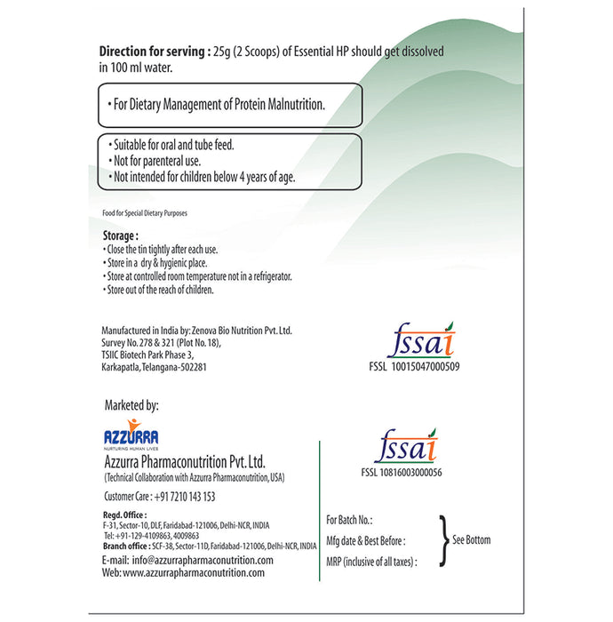 Azzurra Essential High Protein Nutrition with L-Creatine & DHA | Flavour Powder Vanilla